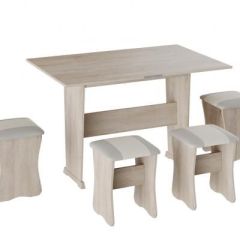 Комплект состоит из прямого и углового диванов, кресла для отдыха и пуфа.