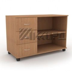 Выкатная офисная тумба способна расширить потенциал рабочего стола, поскольку в задачи этого предмета интерьера входит хранение бумаг, канцелярских принадлежностей и личных вещей сотрудника. На крышке тумбы принято размещать периферийные устройства к ПК.