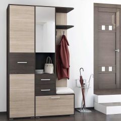 Прихожая компактна, занимает немного места. Прихожая содержит все элементы, необходимые для создания комфорта во входной зоне.