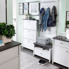 Комплект мебели для прихожей представляет собой идеальное сочетание функциональности, простых форм и оригинальной окраски. Небольшие круглые металлические ручки серебристого цвета декоративно дополняют дизайн мебели и обеспечивают комфортное открытие. Используются петли Hettich и роликовые направляющие.