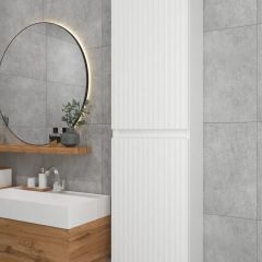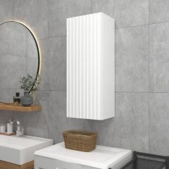 Белый шкаф пенал с рифлёным фасадом будет отлично и стильно смотреться как в ванной, так и в туалете. Шкаф пенал с полками можно повесить в прихожей, в коридоре и использовать для хранения небольших вещей и мелочей. Такой белый навесной шкаф можно использовать как шкаф навесной в гостиной или как шкаф для детской.