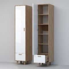 Эго П-1 Пенал с 1дв. 1 ящ (дуб крафт золотой/белый глянец) на ножках